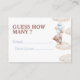 Add some fun to your baby shower with this 'We Can Bearly Wait' Guess How Many game card. Featuring a sweet teddy bear holding a balloon and soft watercolor blue tones, this playful game will have your guests guessing the number of items inside a jar while celebrating the upcoming arrival of your little one. A whimsical touch for an exciting and memorable celebration!