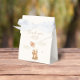 Featuring a cute bear holding balloons, a butterfly and clouds, this baby shower favour box is sure to bring a smile to the faces of your guests. The whimsical and adorable design will have everyone excited to celebrate with you!