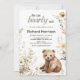 Celebrate your upcoming arrival with this “We Can Bearly Wait” baby shower invitation featuring a sweet watercolor bear surrounded by rustic dried flowers and neutral beige tones. Perfect for a gender-neutral, woodland, or boho baby shower theme. This charming design adds a cozy and elegant touch to your event and can be personalized easily for your special day. Designed with love by HappyBearStudio.