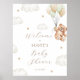 Welcome guests in style with this adorable baby shower welcome poster, featuring a sweet teddy bear holding balloons. This sign adds a charming and elegant touch to your celebration. Perfect for greeting guests and setting the tone for a memorable event!