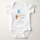 We Can Bearly Wait Personalized Bear Baby Bodysuit. This cute bodysuit features a watercolor style bear holding onto a blue balloon. Customize the template with your baby's name as well as due date. It complements my baby shower theme, so it can first be used as party decor - hang it up on some twine with clothespins for a cute display. And then you also have a keepsake for your baby to wear once your little one arrives. © Kimbellished, LLC