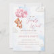 Celebrate your little girl on the way with this We Can Bearly Wait baby shower invitation. A soft, feminine twist on the beloved teddy bear theme. Featuring a sweet brown bear surrounded by pastel pink balloons and stars, this teddy bear invitation adds the perfect touch of warmth and charm to your celebration. Whether you’re planning a cozy afternoon sprinkle or a full baby shower, this customizable digital invite makes sharing your event details effortless.