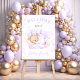 We Can Bearly Wait Girl Baby shower welcome sign. The soft pastel purple / lavender, ivory and beige colors with a cute sleeping baby bear girl on the clouds with the balloons is just so adorable for a baby girl's baby shower. Easily personalize the text. Great for a baby girl shower party the whole year round. - Kate Eden Art