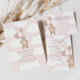 This design features an ivory and pink color palette, a brown bear in the clouds, as well as elegantly balanced serif and sans serif typography, perfect for your soft and feminine baby shower.