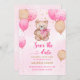 Watercolor Teddy Bear Pink Balloons We can bearly wait save the date invitation. Matching items available.