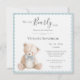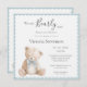 We can bearly wait theme baby shower invitation. Adorable hand drawn teddy bear. The simple soft colors sets the tone for a sweet themed baby shower. Such a sweet and simple invitation for that special event. Coordinating blue scalloped frame finish off this adorable invite.