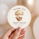 Add a sweet finishing touch with this We Can Bearly Wait baby shower sticker! Featuring a sleepy watercolor teddy bear floating in a soft beige balloon basket, this classic round design is perfect for sealing favor bags, boxes, or envelopes. A charming and gender-neutral detail for your teddy bear-themed celebration!