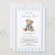 Celebrate your little one with the sweetest “We Can Bearly Wait” baby shower theme. This charming design features an adorable teddy bear accented with a soft blue bow and classic blue stripes, creating a timeless and cozy look that’s perfect for welcoming a baby boy. Gentle neutral tones paired with baby blue details make this theme both elegant and playful—ideal for a modern yet sentimental celebration.