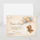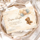 Soft, sweet, and timeless, this teddy bear baby shower design features a charming storybook bear holding a delicate balloon beneath a scalloped heirloom frame. The warm neutral palette of cream, soft blue, and gentle beige creates a cozy nursery-inspired aesthetic that feels both classic and elevated. Subtle gingham details and tiny star accents add a touch of vintage charm without overwhelming the layout. Perfect for a baby boy shower or a neutral celebration with a traditional, heartfelt feel.