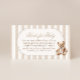 A timeless touch for your baby shower invitations. This books for baby card features elegant beige stripes, a vintage teddy bear, and classic typography — inviting guests to help build baby’s first library with a cherished book.