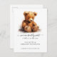 An adorable watercolor fuzzy teddy bear pregnancy announcement with the expression: "we can bearly wait". A trendy cute style for your big announcement. Modern serif type contrasted with script typography.