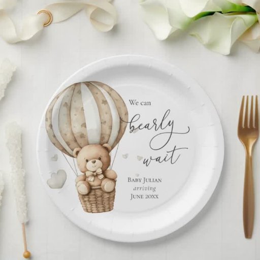 We can bearly wait! Teddy-Bear-themed Baby Shower thank you card featuring a watercolor teddy bear flying high in a hot air balloon. Customize with your information for the mommy to be. Click "click to customize further" to change the font style, size or color.