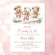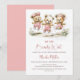 Celebrate the imminent arrival of your bundle of joy by inviting your friends and loved ones to your baby shower with this invitation featuring three adorable teddy bears wearing pink polka dot overalls playing jump rope.. The customizable text allows you to effortlessly add your name, date and time of the celebration, and the RSVP information. A variety of paper types and corner styles are available for your unique invitations, along with the option to download if you prefer a digital format.
