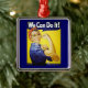 What Patriotic 40s collection would be complete without Rosie the Riveter? Here is a square premium ornament with an image of Rosie, a cultural icon of the United States, representing the American women who worked in factories during World War II, many of whom worked in the manufacturing plants that produced munitions and war supplies. These women sometimes took entirely new jobs replacing the male workers who were in the military. Rosie the Riveter is commonly used as symbol of feminism and women's economic power.