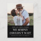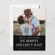 A timely wedding announcement featuring We simply couldn't wait headline. A great way to let loved ones know you've tied the knot. The backside allows for a personalized message to friends and family or can be removed if desired.