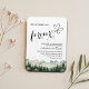 An elegant Wedding Invitation magnet with watercolor mountains and pine trees that you can customize with your details.