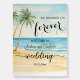 An elegant Wedding design with watercolor beach and palm trees that you can customize with your details.