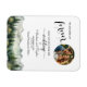 An elegant Wedding Save the Date magnet with watercolor mountains and pine trees and 1 special photo that you can customize with your details.