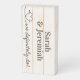 This was purchased for our son and daughter-in-law for their 5th Wedding Anniversary. It was not expected to get to them in time for their anniversary, but I believe in my heart the artist saw the date and made sure it was both made and delivered on their anniversary. The quality is excellent, and it made quite an impression on our kids. They kept telling us how perfect it was!! Thank you. Excellent!! The names were centered and the date was right where it should be. They loved the gift!