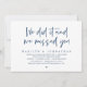 Having your We Did It And We Missed You Wedding Elopement Invitation match the theme of your party is a great detail that your guests will appreciate. The thoughtfulness of a consistent party theme is often appreciated and can show your guests that you can host a cohesive event.
