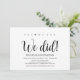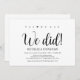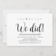 Yes, you can print on the back of your invitation for free! Most designs already have a corresponding design on the back that can be personalized using the Design Tool and going to Layers. This is a great way to communicate more information or further personalize your We Did Wedding Elopement Reception Invites. The option is really up to you.