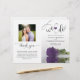 This beautiful wedding program is both modern and elegant. The DIY folded design features modern script lettering on the front reading "we do" with the names of the couple and wedding date/location. There is a photo of a beautiful amethyst purple colored rose reflecting in a pool of water with waves and ripples. The inside has the same flower as a watermark background with space for the ceremony and bridal party details. The back features your photo and a customizable thank you note. Sophisticated, stylish, and chic, these programs will add class and style to your wedding celebration.