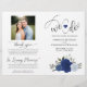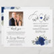 This beautiful wedding program is simple, stylish, and elegant. The DIY folded design features modern script lettering on the front reading "we do" with the names of the couple and wedding date/location. There is a cluster of beautiful hand painted watercolor roses in shades of dusty blue, navy, and indigo. The inside has space for the ceremony and bridal party details. The back has your photo, along with space for a customizable thank you note, and a memorial note to recognize lost loved ones. Sophisticated, stylish, and chic, these programs will add class and style to your wedding celebration.
