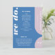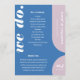 Our minimal, bold retro style wedding order of service program is perfect for the trendy couple who loves standing out and making a bold statement. Our design features a bold bright blue and purple color combo. Simple abstract arch and circle shapes create a bold look with "We Do." displayed boldly in white large font. The reverse side features a simple modern design with a bold monogram and an optional couple's wedding website address. Designed by Moodthology Papery