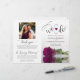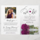This beautiful wedding program is both modern and elegant. The DIY folded design features modern script lettering on the front reading "we do" with the names of the couple and wedding date/location. There is a photo of a beautiful long-stemmed cassis purple, magenta, or berry colored rose reflecting in a pool of water with waves and ripples. The inside has the same flower as a watermark background with space for the ceremony and bridal party details. The back has your photo, along with space for a customizable thank you note, and a memorial note to recognize lost loved ones. Sophisticated, stylish, and chic, these programs will add class and style to your wedding celebration.