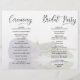 This beautiful wedding program is both modern and elegant. The DIY folded design features modern script lettering on the front reading "we do" with the names of the couple and wedding date/location. There is a photo of a beautiful long-stemmed dusty purple colored rose reflecting in a pool of water with waves and ripples. The inside has the same flower as a watermark background with space for the ceremony and bridal party details. The back has your photo, along with space for a customizable thank you note, and a memorial note to recognize lost loved ones. Sophisticated, stylish, and chic, these programs will add class and style to your wedding celebration.