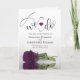Make it easy for your guests to follow along with the ceremony with these beautiful folded wedding programs. The design features a stunning and romantic design with a single long stemmed plum purple or eggplant colored rose lying on its side mirrored in a pool of water. There is modern script lettering for the titles with room for details on the ceremony, the bridal party, a photo, a thank you note and a short memorial. The wording on the front reads "We Do" with a cute romantic heart between the letters. Elegant yet fun, these programs are a wonderful addition to your wedding stationery.