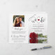 This beautiful wedding program is both modern and elegant. The DIY folded design features modern script lettering on the front reading "we do" with the names of the couple and wedding date/location. There is a photo of a beautiful long-stemmed red rose reflecting in a pool of water with waves and ripples. The inside has the same flower as a watermark background with space for the ceremony and bridal party details. The back has your photo, along with space for a customizable thank you note, and a memorial note to recognize lost loved ones. Sophisticated, stylish, and chic, these programs will add class and style to your wedding celebration.