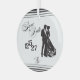 This elegant double sided flat save the date keepsake ornament is available is all shapes and sizes. This unique ceramic save the date keepsake ornament makes the perfect holiday gift for friends and family involved in the planning of your wedding. Give as a parent's gift, bridal party keepsake, or as a way to surprise everyone and announce your engagement at your holiday gatherings. Featuring all custom elements; from the couple silhouette, to the date stamp and monogram designed specifically for you to use throughout your wedding suite and day of stationery this is a spectacular memento of this very special time in your lives. This extravagant Save the Date is stunning in crisp black and white. This Save the Date Design is part of our Tuxedo Collection setting the stage for the fairy tale wedding of your dreams and an event your guests will never forget. Design your own custom elements or contact PK Paperie prior to placing your order and we will design them for you according to your specifications. At only $50 for up to 5 Customs Elements this is a bride's dream come true. These custom features will be delivered via digital download and are exclusively licensed for your use across your entire print suite and beyond. For beautiful keepsakes, signatures on thank you cards, monograms for towels or mailboxes, wax stamps, and more you will use these digital assets long after the cake is cut and the bouquet is tossed. PK Forever Yours Paperie predicts that keepsake Save the Dates and Invitations in ceramic, marble, acrylic, metal, or even wood will be a huge trend for the 2026-27 wedding season.