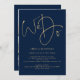 We Do Gold 3 Photos QR Code Navy Blue Wedding Invitation