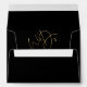 We Do Gold Name Return Address Black Wedding to fit 7x5" invitations. Elegant gold set script We Do is inside for your guests to see when they open it and your names and return address is on the back flap on a classic black background. A white area is on the front so you can hand write in your recipients' name and address to show up. This box can be removed if not required. You may consider our individual return address labels whihc you will find in this collection.
