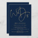 We Do Gold Script QR Code Navy Blue Wedding Invita Invitation