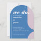 Our minimal, bold retro style arch wedding invitation is perfect for the trendy couple who loves standing out and making a bold statement. Our design features a blue and purple color combo. Simple abstract arch and circle shapes create a bold look with "We Do." displayed boldly in white large font. The reverse side features a simple modern design with a bold monogram and an optional couple's wedding website address. Designed by Moodthology Papery