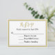 This simple and elegant wedding RSVP response card is designed with a calligraphy font in the "RSVP" heading and bordered with gold and black edging for a clean modern appeal. The reverse side of the response card features a modern black and gold chevron pattern. This response card is a part of the "We Do Modern Chic Wedding Collection" and is ready to personalize with your wedding details. Simply select the "Customize It" button and input your details in the template on the right. You may change fonts, font colors, and sizes as well as rearrange the text layout to suit your needs and preferences.