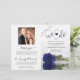 This beautiful wedding program is both modern and elegant. The DIY folded design features modern script lettering on the front reading "we do" with the names of the couple and wedding date/location. There is a photo of a beautiful long-stemmed navy blue colored rose reflecting in a pool of water with waves and ripples. The inside has the same flower as a watermark background with space for the ceremony and bridal party details. The back has your photo, along with space for a customizable thank you note, and a memorial note to recognize lost loved ones. Sophisticated, stylish, and chic, these programs will add class and style to your wedding celebration.