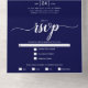 We do navy blue white script calligraphy wedding all in one invitation
