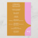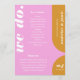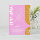 Our minimal, bold retro style wedding order of service program is perfect for the trendy couple who loves standing out and making a bold statement. Our design features a bold bright pink & yellow color combo. Simple abstract arch and circle shapes create a bold look with "We Do." displayed boldly in white large font. The reverse side features a simple modern design with a bold monogram and an optional couple's wedding website address. Designed by Moodthology Papery