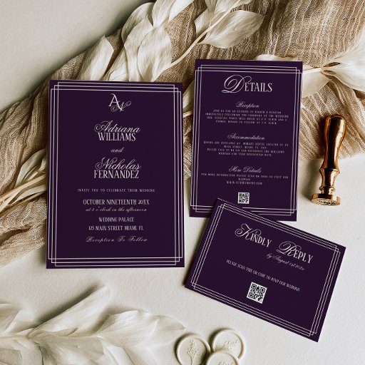 elegant old money dark purple wedding invitation