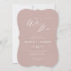 We Do salmon pink script text elegant wedding invite. Hand painted navy background. Part of a collection.