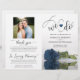 This beautiful wedding program is both modern and elegant. The DIY folded design features modern script lettering on the front reading "we do" with the names of the couple and wedding date/location. There is a photo of a beautiful long-stemmed dusty or steel blue colored rose reflecting in a pool of water with waves and ripples. The inside has the same flower as a watermark background with space for the ceremony and bridal party details. The back has your photo, along with space for a customizable thank you note, and a memorial note to recognize lost loved ones. Sophisticated, stylish, and chic, these programs will add class and style to your wedding celebration.