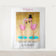 We do! We Did!! Lets Party!!! Wedding photo backdrop. The perfect fun design for destination and beach wedding photos. Elegant gold glitter sparkle mixed with beach fun. It’s your wedding, do it your way. Original graphic designs. Personalize all text. Cute pink flamingos in bow tie and tux and wedding veil with garter.