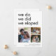 A stylish way to let your friends know of your elopement and invite them to join you for a post-wedding celebration too! Simplistic typography We Do We Did We Eloped is on the front in black, beneath which add your 3 favorite photos from your wedding, and personalise your names, and date and location of your ceremony. On the back, easily personalise with your announcement and invitation details.