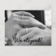Spread the news of your elopement with this announcement. Black and white image of wedding bands.