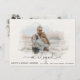 Announce your wedding after your elopement or private ceremony with these elegant, modern 4 photo wedding announcement cards. This trendy design features one image on the front, placed behind a watercolor paper texture effect opening in the soft white frame, making it look like your photo has been painted in watercolor. 'We eloped' is written below in hand lettered script, followed by your names and details. Three photos, in watercolor masks, are displayed on the back, with your personal message. CREATOR'S NOTE: The "vellum overlay" on this product is a digital effect." Contact designer for matching products. Copyright Anastasia Surridge for Anastasia Designs, all rights reserved.