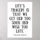 We get old too soon and wise too late poster
