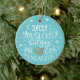Celebrate your engagement with this fun and modern ceramic ornament. The front features a trendy hand-lettered caption that reads "2021 you sucked! But yay, we got engaged!" in white hand-lettered fonts over a light blue background, and is decorated with snowflakes and an illustration of two engagement rings.